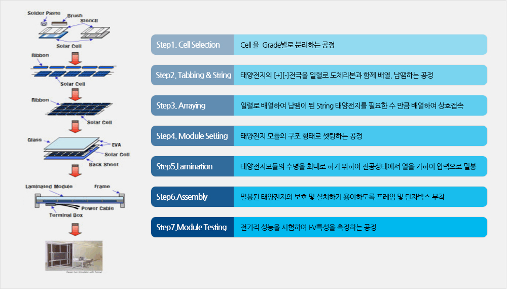 태양광 발전은 반도체로 만들어진 태양전지에 빛 에너지가 투입되면 전자의 이동이 일어나서 전류가 흐르고 전기가 발생하는 ‘광전 효과’를 이용한 발전 방법으로, 무한정ㆍ무공해의 태양 에너지를 이용한다는 점에서 연료비가 들지 않고 대기오염이 발생하지 않는다. 또한 기계적인 진동과 소음이 없고 수명이 최소 20년 이상으로 길며, 유지보수도 용이한편이다.
